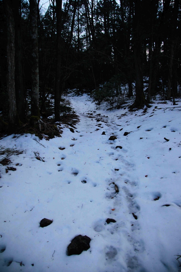 林道というのか誰がつけたとも分からない道筋を追って散策をしますが、獣の足跡も同じ道を通っているんです。時間帯をずらしながら鹿や猪、それ以外の小動物も獣道として同じみちを使っていると思うと、なにか嬉しくなりました。